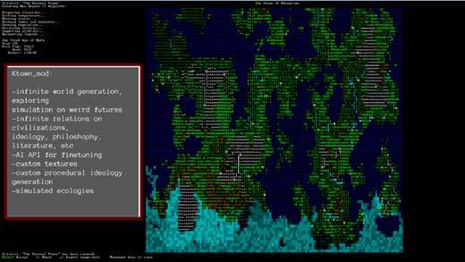 Ktown: Futuras epistemologías de la intelogenesis, es una propuesta de modificación de Dwarf Fortress, un simulador de mundos conocido por su complejidad y capacidad de dar lugar a narrativas emergentes.