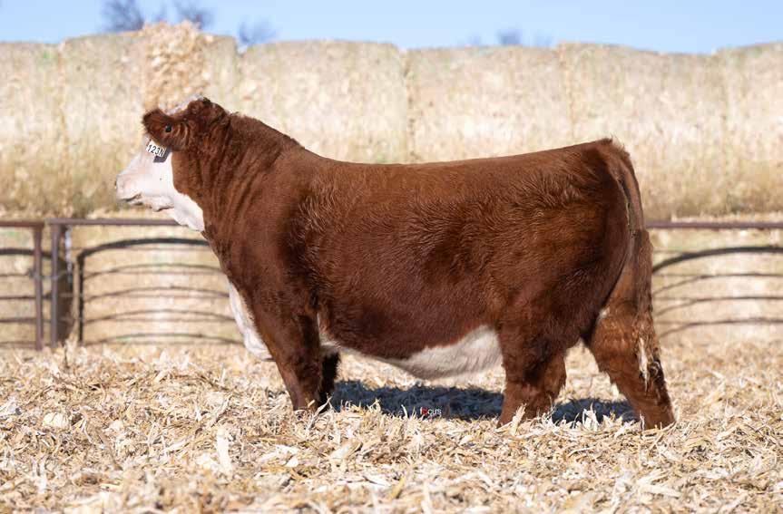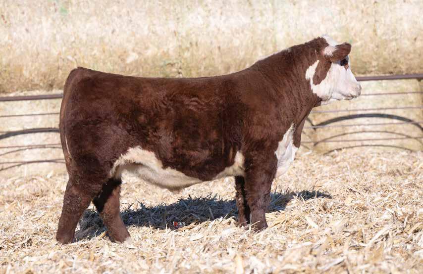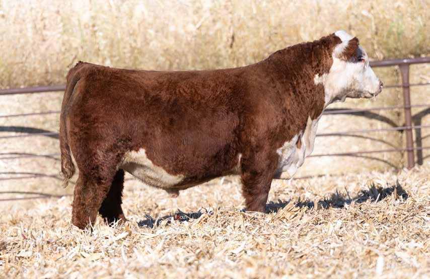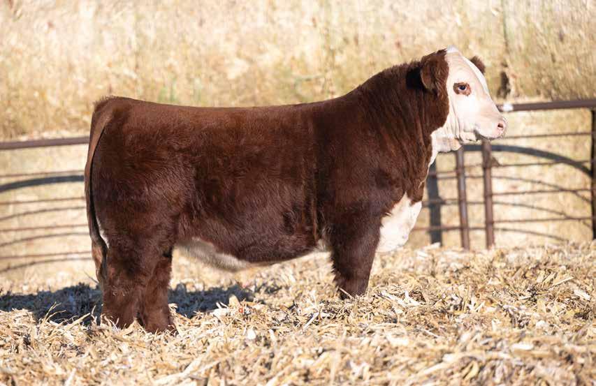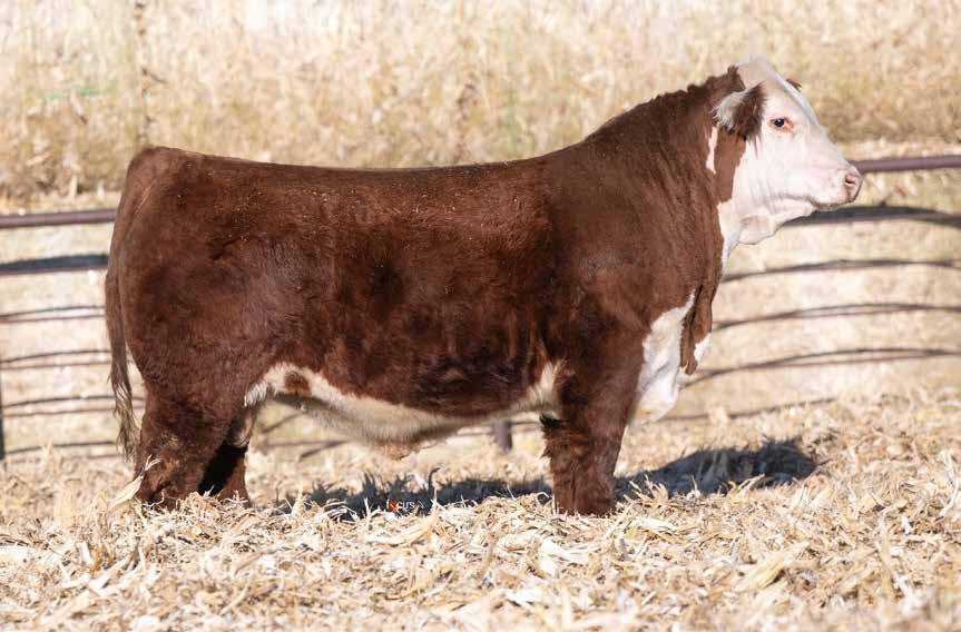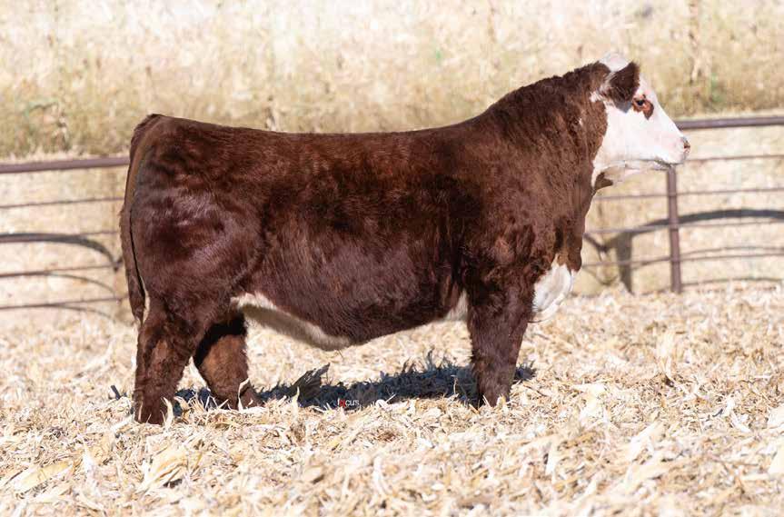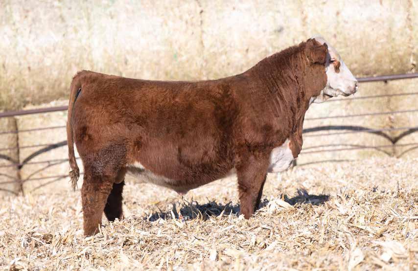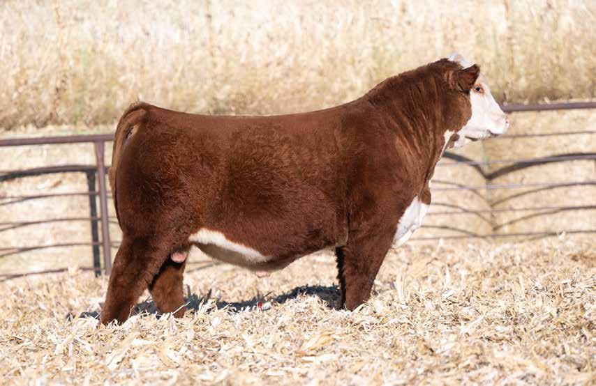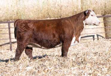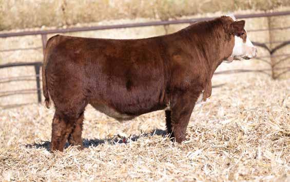 This is the natural calf out of our 125L donor who will play a huge role in our program in the future. She did a great job on her first calf with a BW of just 70 pounds and a 205 day weight of 743! Outstanding set of numbers on this big framed dark red Garfield 338 son. 11 traits in the top 10% of the breed. A maternal brother, JDH Gunslinger, who sold in the Denver sale to Stellpflug Cattle.