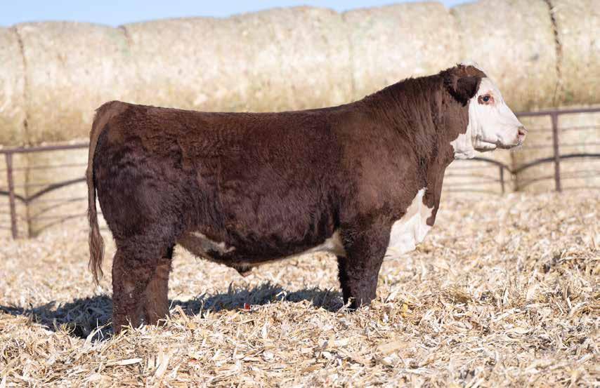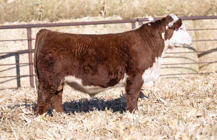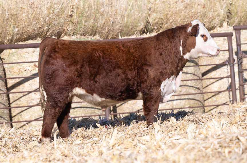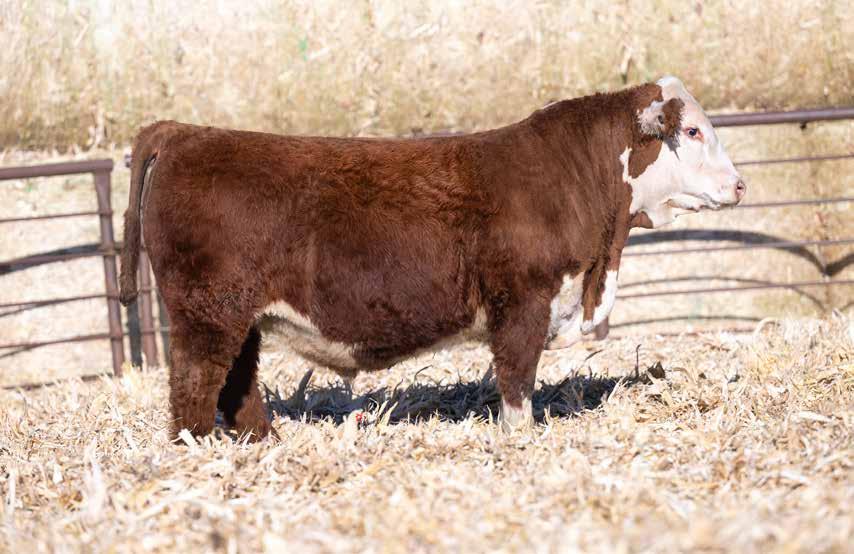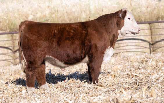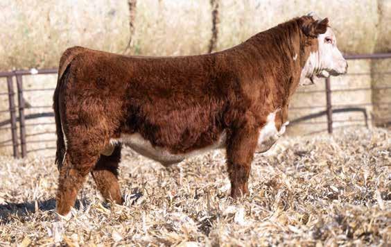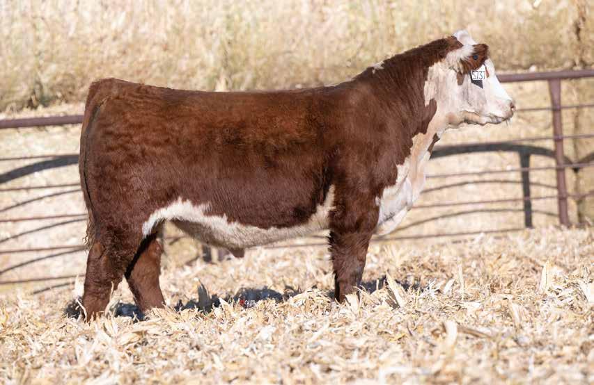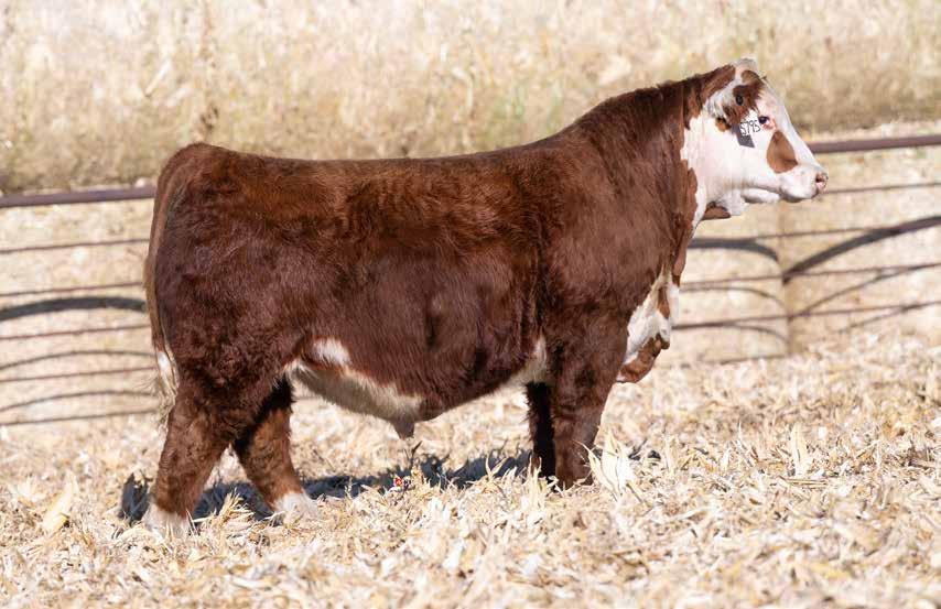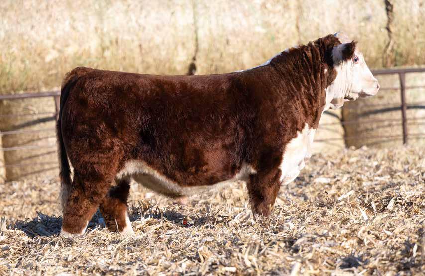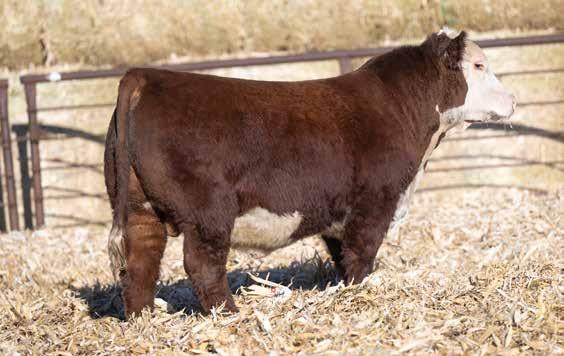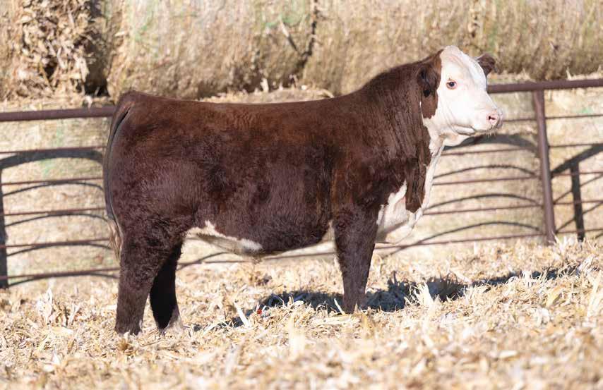 This is the natural calf out of our 125L donor who will play a huge role in our program in the future. She did a great job on her first calf with a BW of just 70 pounds and a 205 day weight of 743! Outstanding set of numbers on this big framed dark red Garfield 338 son. 11 traits in the top 10% of the breed. A maternal brother, JDH Gunslinger, who sold in the Denver sale to Stellpflug Cattle.