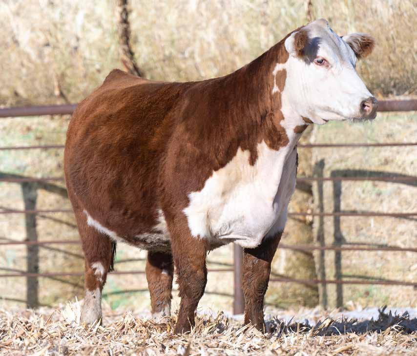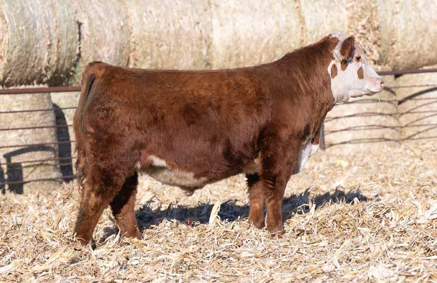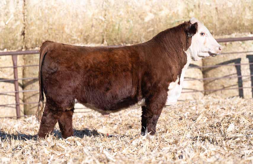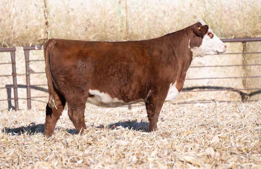 3 year old. 8 traits in the top 10% of the breed. AI’ed to AH MMC IN DEMAND 4887 ET on 4-29-25. Vet called safe to AI date due February 5th. Pasture Exposed to 4B Garfield 338 from 5-2 to 5-28 then to RST Final Print from 5-28 to 7-1
