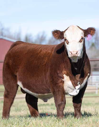 Full sister to JDH AH Old Fashioned 25M ET, high selling bull in the 2025 Denver Hereford sale. She was on a poor recip and didn’t do much until after weaning, but she has the potential to be a top producing female. She has 6 traits in the top 6% of the breed including a .46 marbling and is a unique individual being a homozygous polled daughter of Arlo out of the great donor 19Z who is the mother of herd bulls and donor females across the country.