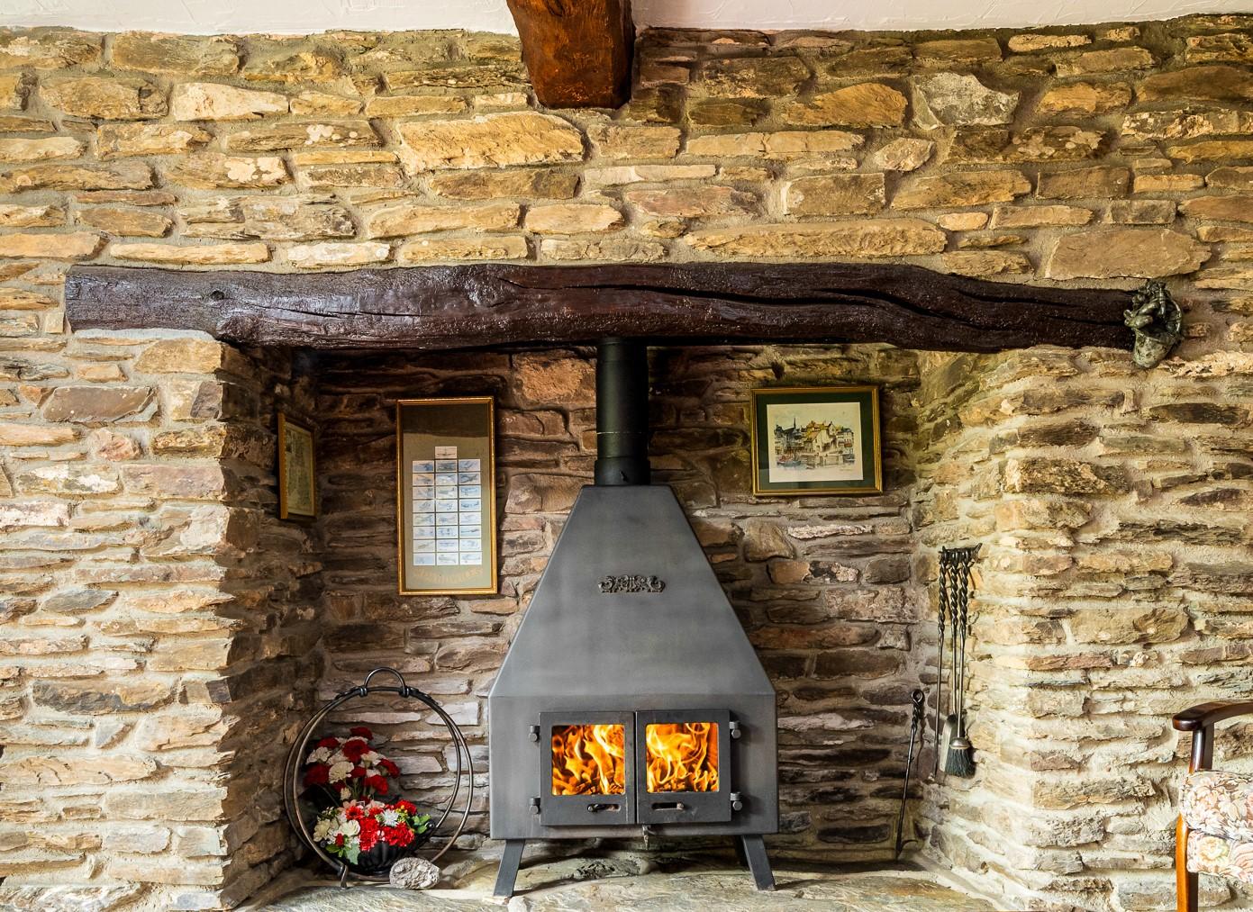 The large stone fireplace has a well proportioned wood burner fitted, standing on its substantial stone hearth.