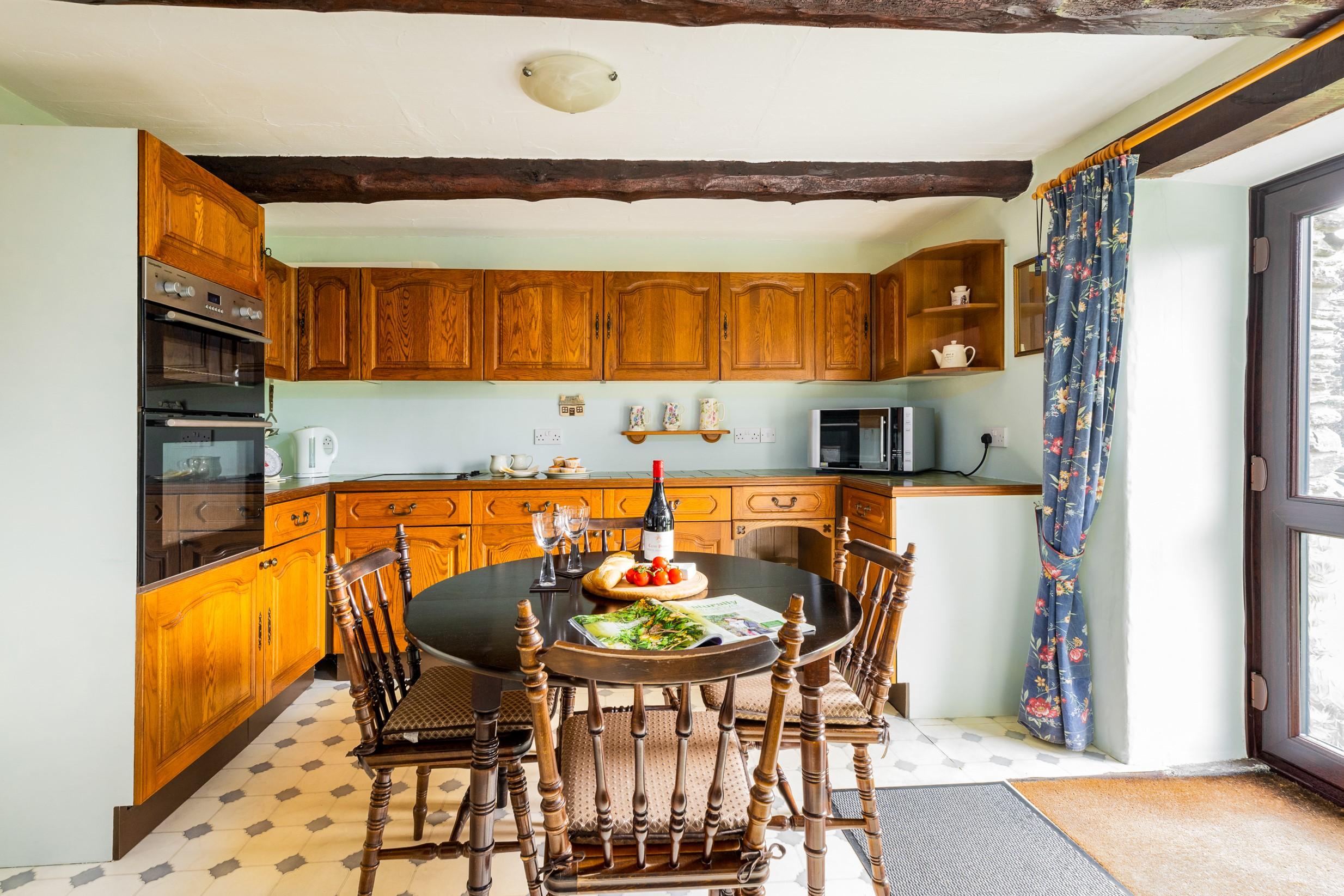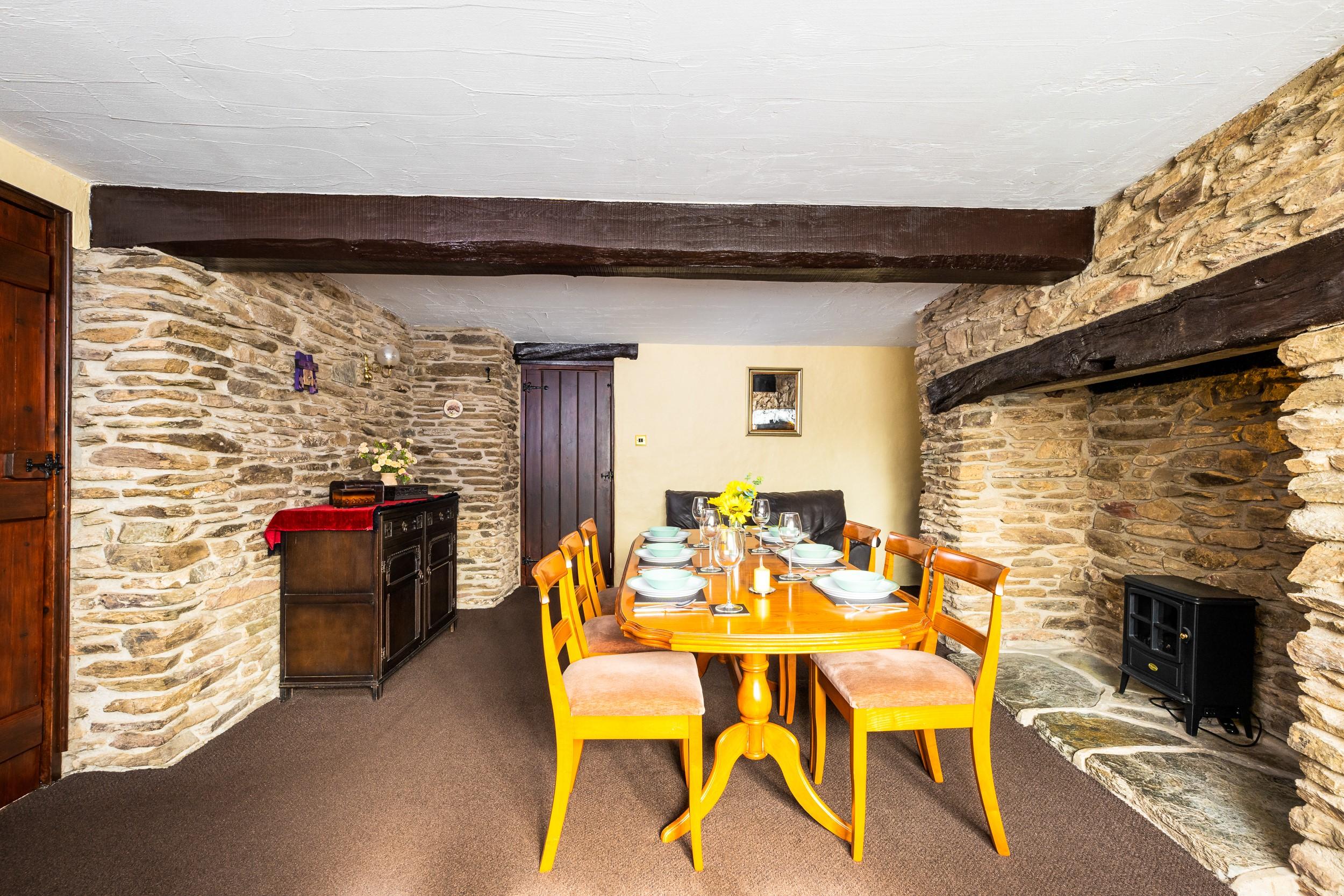 The country kitchen offers space for all your needs currently with traditional fitted units, built in oven and hob, and space for other appliances. Light pours in from the glazed door and windows to the rear, overlooking the garden and glistening over the characterful timber beams. There is space for a kitchen table but the main dining events will happen in the large dining room with its central stone fireplace. Imagine Christmas dinner with loved ones around a large table with the twinkle of fairy lights illuminating the timber beams and stone walls.