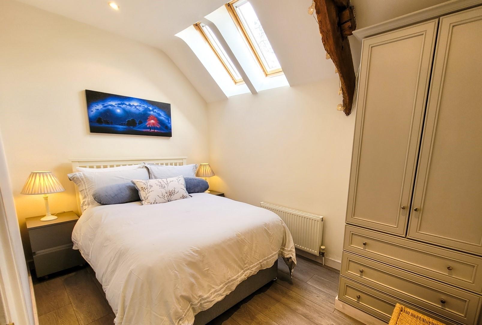 The first two bedrooms are equally sized, one set up as a single bedroom, the other as double, with beds and furnishings to match. Beautifully decorated with fitted wardrobes, exposed timber beams, high ceilings and two skylights each, allowing light to flow in from above.