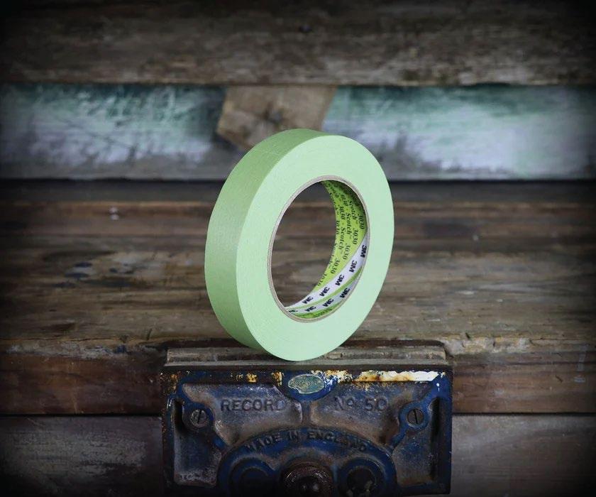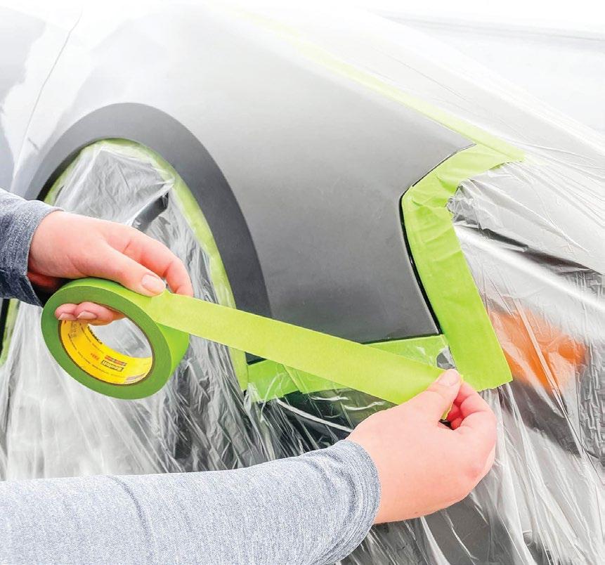 Cinta de enmascarar de color verde, diseñada para el re-acabado automotriz.