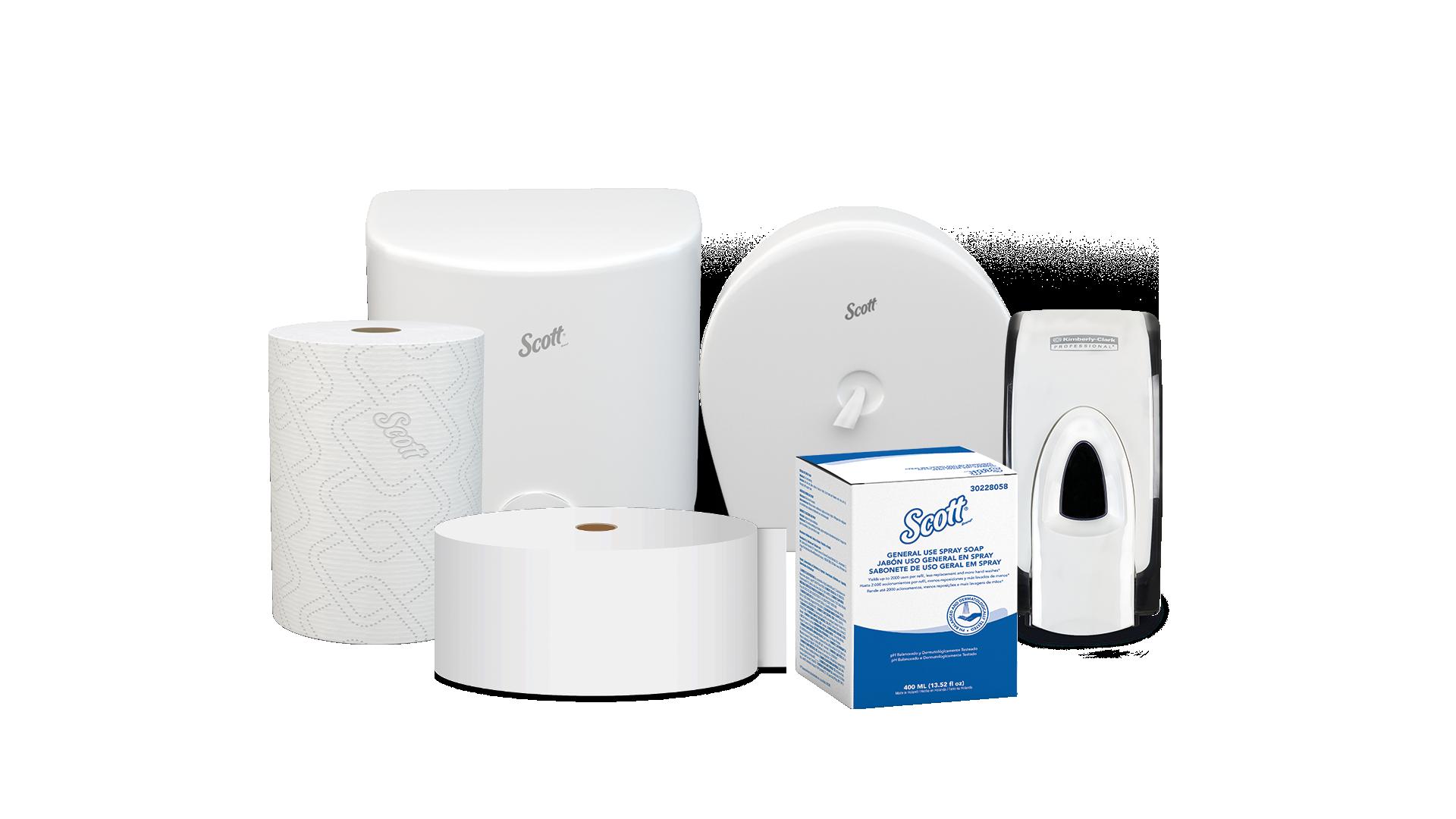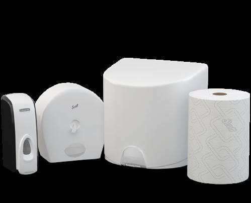 Autodispensables Scott® proporcionan beneficios de calidad y desempeño para instalaciones de bajo tráfico. El papel higiénico permite un menor desembolso gracias a su duopack.