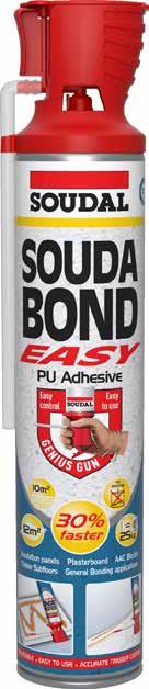 Soudabond Easy Genius es un adhesivo de poliuretano autoexpandible, monocomponente y listo para usar para una unión permanente limpia, eficiente y económica de paneles de aislamiento y placas de yeso en edificios y construcciones.