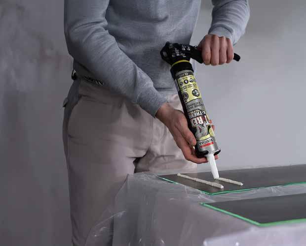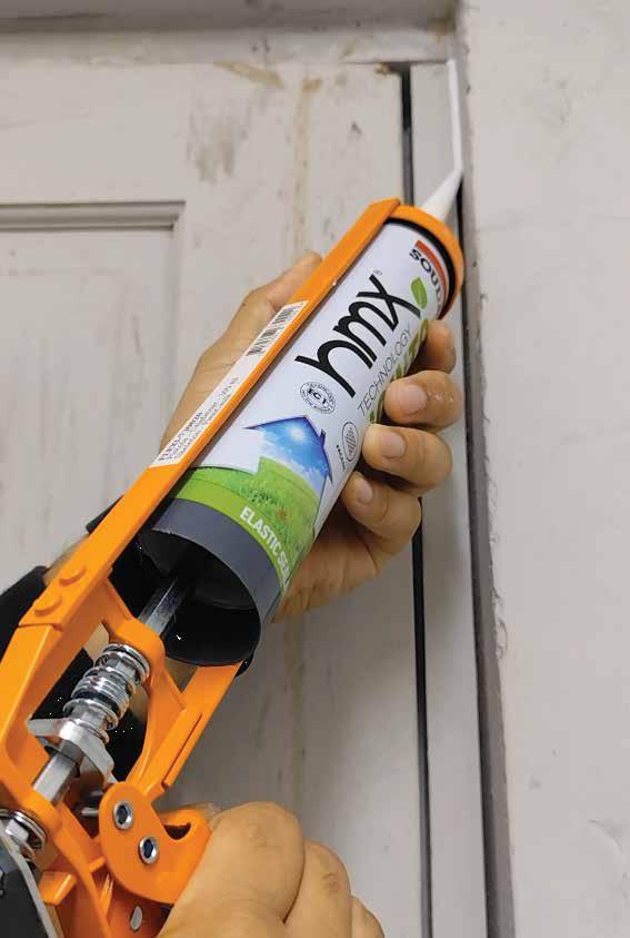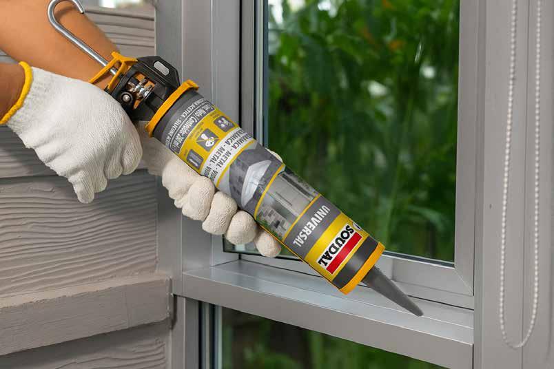 • Sellador adhesivo para el pegado elástico y fijación de mamparas, tabiques, zócalos y paneles.