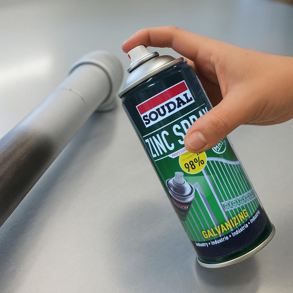 Spray galvanizante en frío con zinc puro (98 %) y acabado brillante, de efecto catódico.