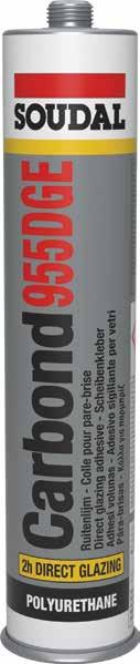 Adhesivo híbrido sin solventes, monocomponente para vehículos. Alta resistencia, flexible, sin necesidad de imprimación, buen agarre y resistencia.