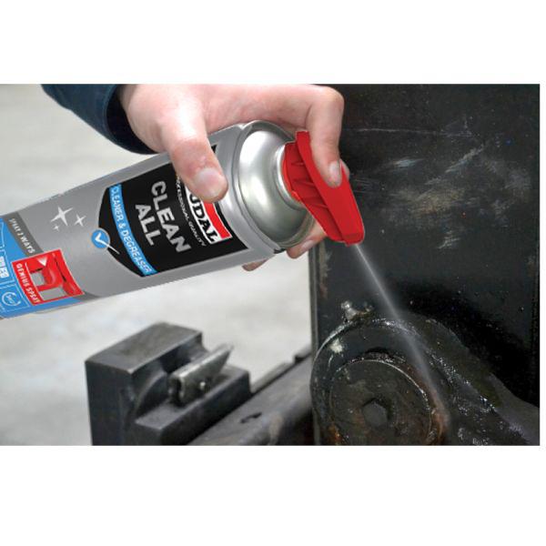 Limpiador y desengrasante potente que elimina grasa, suciedad y restos de adhesivos sin dejar residuos.