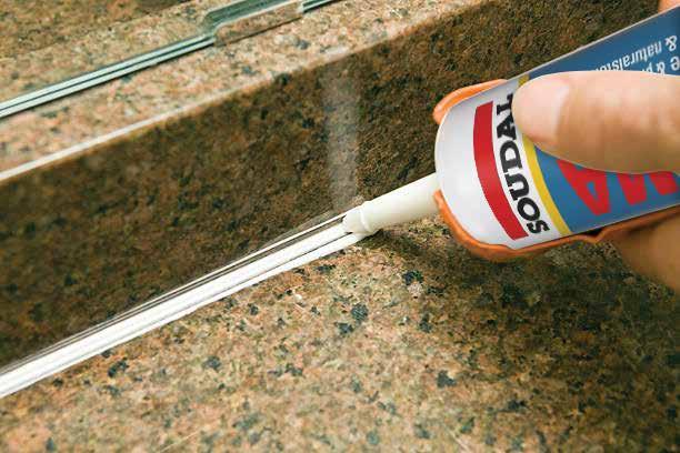 • Unión y sellado en piedra natural tales como mármol, granito, fachadas de piedra.