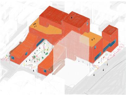 The project explores how to engage with a dense urban environment, acting both within and towards the city. The relationship with the street was a fundamental premise, as the intention was to introduce a pause within the ow of urban movement—a space for contemplation.