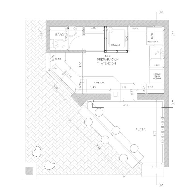 Ca é del Popolo is one of those experimental projects that emerge in spaces often considered unusable or obsolete within the city. The intervention took place in a triangular void between two residential blocks in the Nueva Córdoba neighbourhood. The sense of compression imposed by its surroundings served as the starting point for the design, which was conceived from the outset as an architectural device that would seamlessly integrate into the site—an "urban prosthesis".