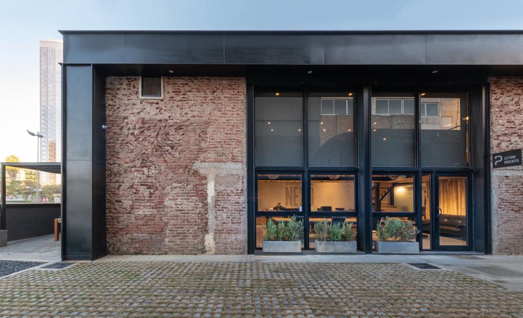 Inspired by 19th-century industrial architecture, we repurposed an abandoned warehouse into the new Becken o ces. The exterior preserves the industrial aesthetic, reminiscent of a factory by the river, while the interior o ers a warm, exible, and welcoming workspace.