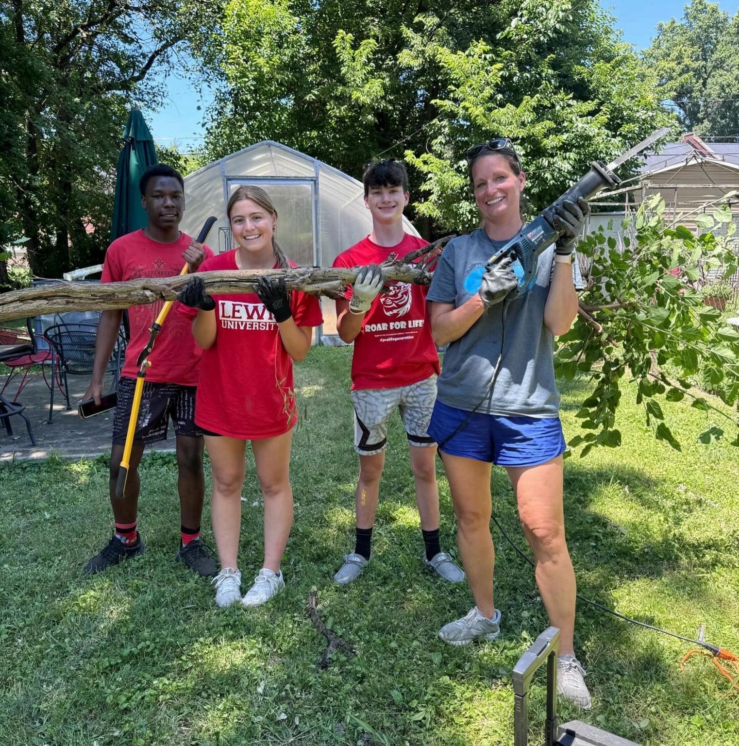 Brandy Collins, Tennis Head Coach, with her daughter Bailey Collins and fellow teammates Jordan Baker, Nicole Townsend, and Olivia Knight