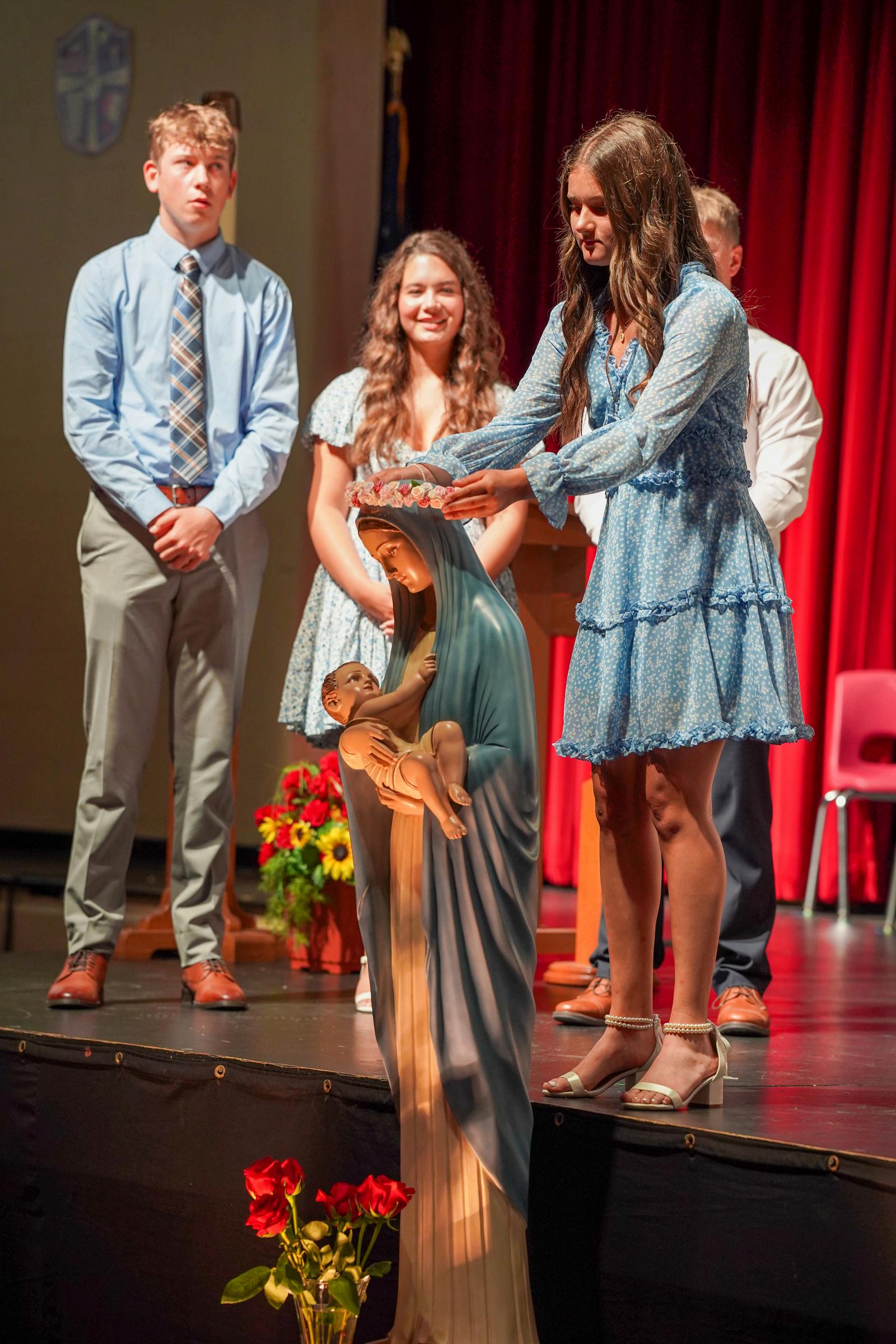 We held our annual Ave Maria Society Morning on April 23. Guests joined us for a Living Rosary with the student body, followed by Mass with Fr. Ray Brenner and Fr. Lowell Will. Following Mass, guests were invited to join us in the Reverend David Nunning Media Center for breakfast, and seniors Isaiah Schaefer and Ella Utley spoke about a day in the life of a Mater Dei student and how the Ave Maria Society’s generosity enables them to receive an excellent Catholic education Deacon Dan Niemeier ‘80, President of Mater Dei, then provided an update of the school and our exciting plans for the future. We appreciate all of our Ave Maria Society members, those present and unable to attend, for it is their incredible forward-thinking generosity that enables Mater Dei to educate our students now and in the future.