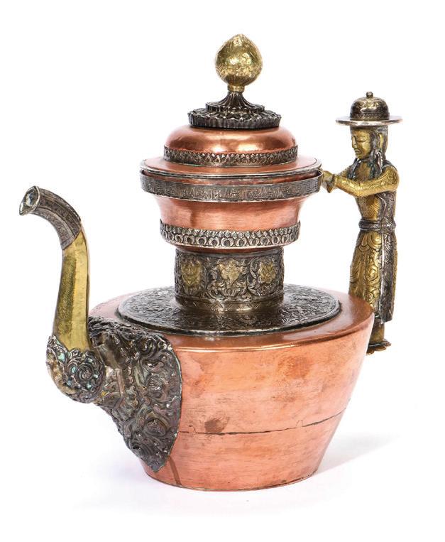 Antique Tibetan Copper, Silver and Gilt Butter Tea Pot Sold for $6400
