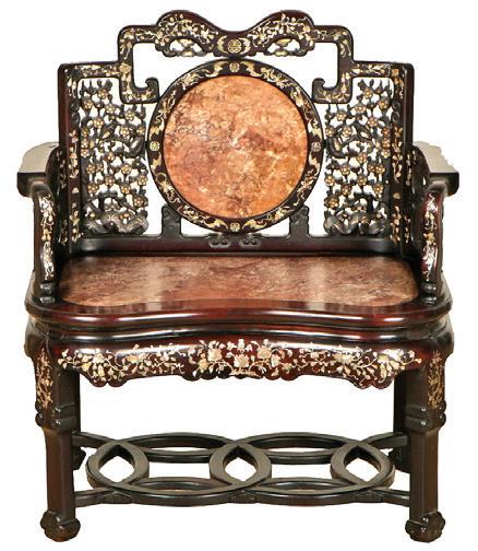 Antique Chinese Hardwood Stone & Inlay Throne, Sold for $11,875