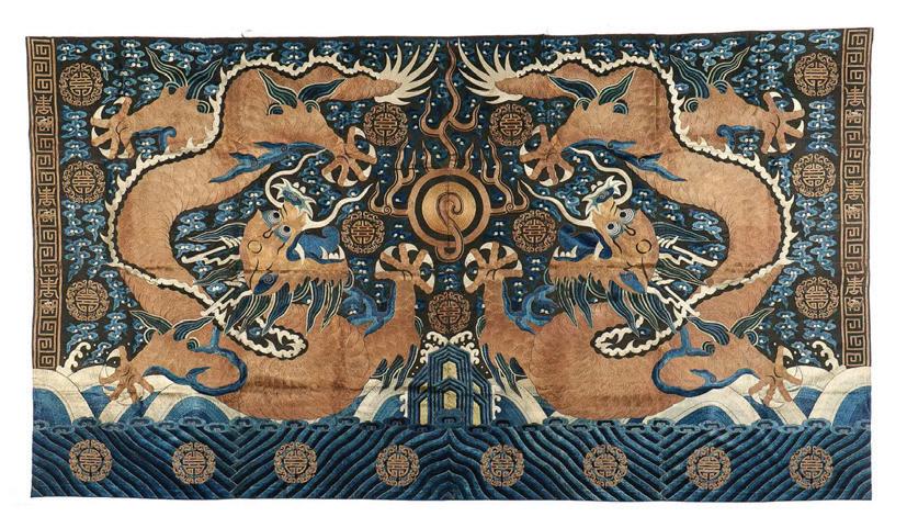 Fine Large Double Dragon Embroidery, Qing D., 126” x 68” Sold for $7680
