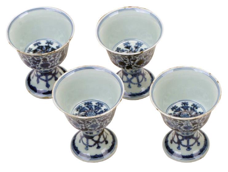 Four Blue and White Porcelain Chalices, Ming Dynasty, Sold for $16,250