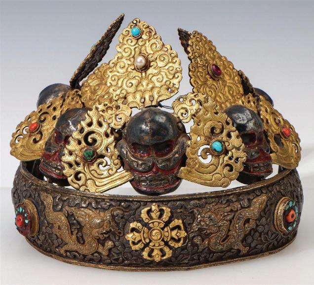 Tibetan Ritual Silver & Gilt Five Skull Oracle’s Crown Sold for $5440