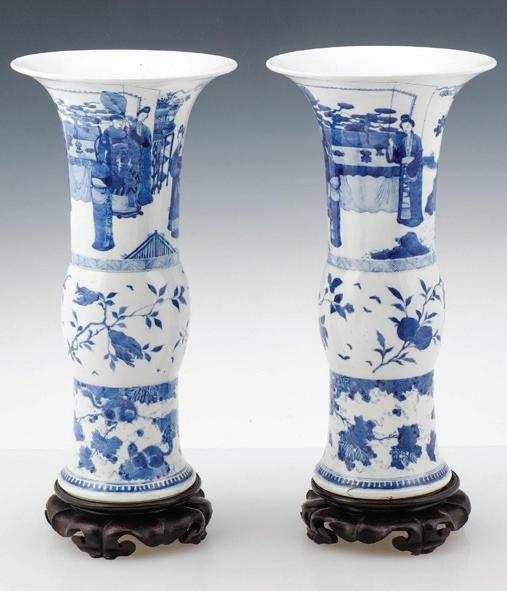 Pair Chinese Kangxi Blue & White Porcelain Vases, Qing Dynasty Sold for $28,160