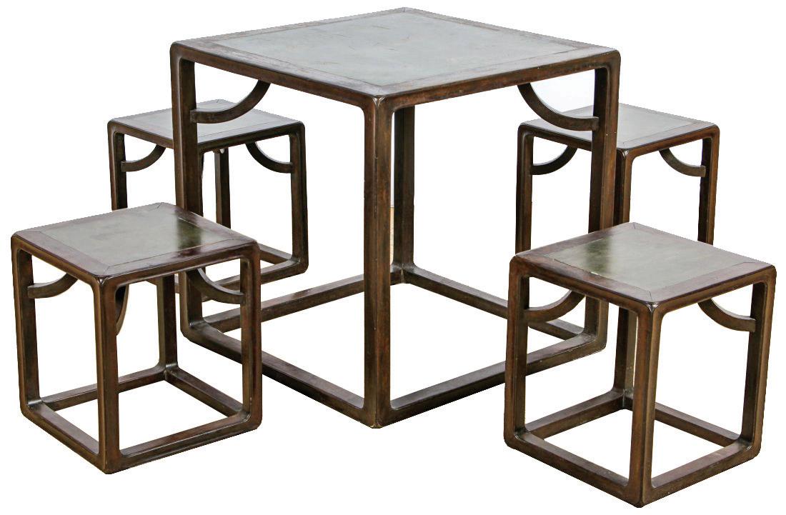Chinese Stone Top Cube Table and 4 Stools, Sold for $25,000