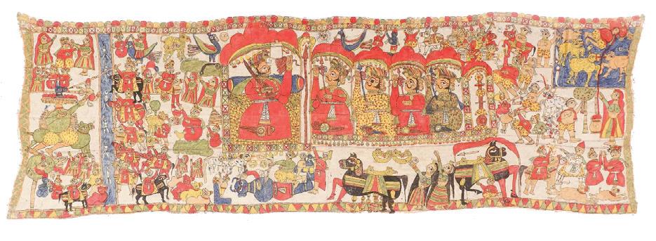 Antique Painted Story Cloth (Phad), Rajasthan, 14’4” x 4’5”, Early 20th C. Sold for $3330