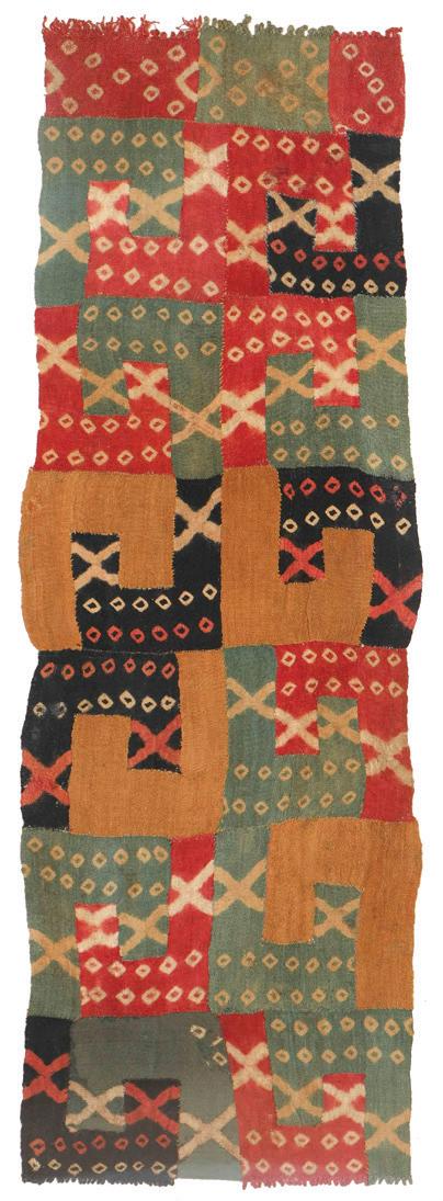 Fine Pre-Columbian Wari Tie-Dye Textile Panel, Peru Sold for $7040