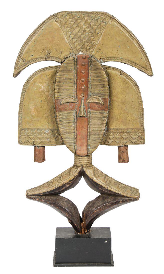 African Temne Peoples Brass Mask Headdress, Sierra Leone. Provenance: Collection of Allan Stone. Sold for $5120