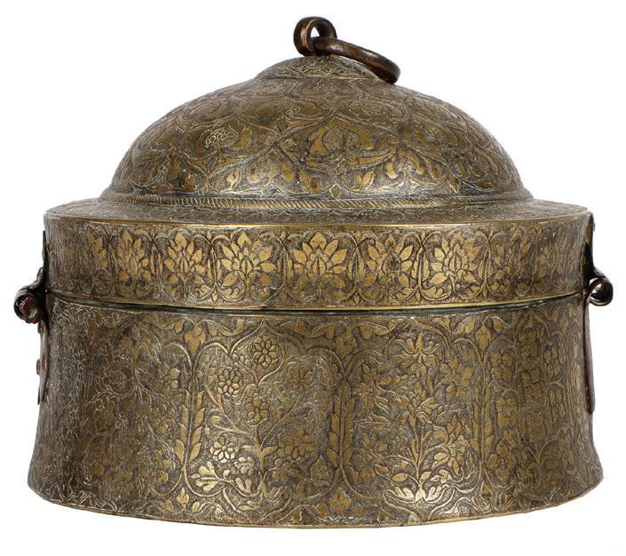 Fine Mughal Engraved Brass Pandan, Rajastan, Possibly Tanjore, 17th C. Sold for $10,240