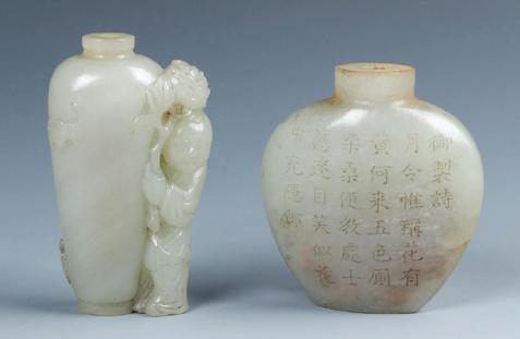2 Antique Chinese Carved Jade Snuff Bottles Sold for $5625