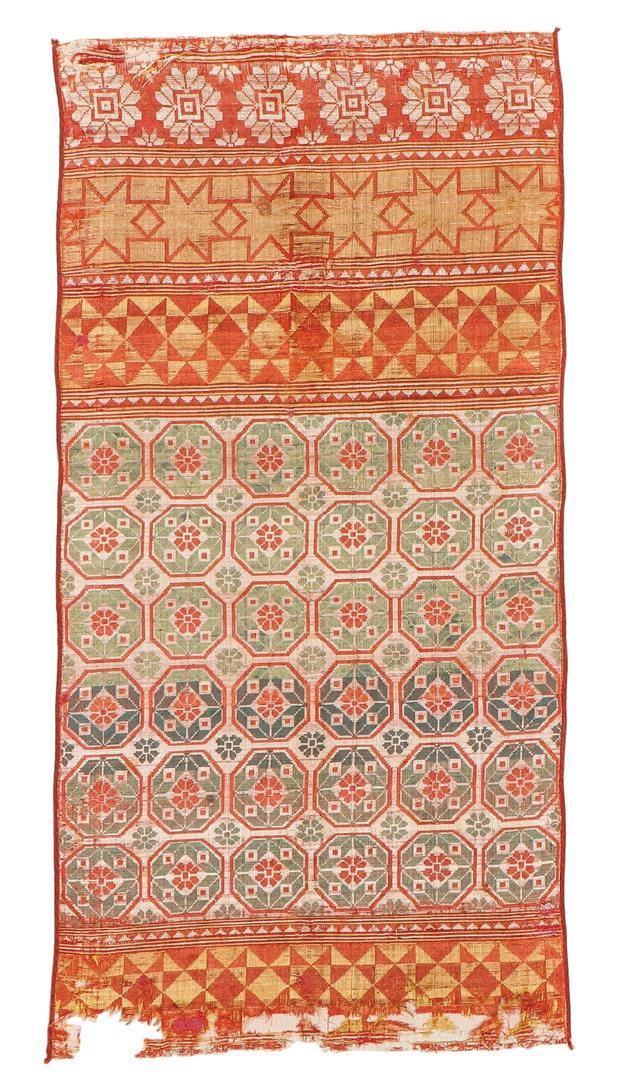 Rare 16th C. Silk Lampas Panel, Nasrid Tile Pattern, Morocco Sold for $4480