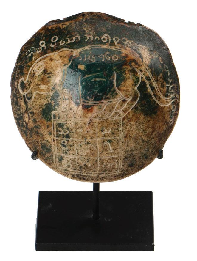Rare Antique Shan Engraved Skull Kapala, 19th C. Sold for $3840