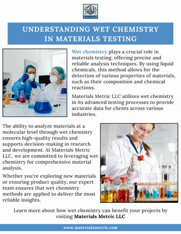 Materials Metric LLC utilizes wet chemistry in its advanced testing processes to provide accurate data for clients across various industries.