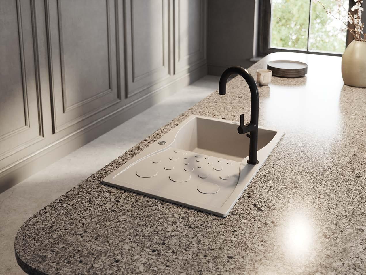 Seria baterii Riveco to rozwiązanie, które łączy nowoczesny design z funkcjonalnością, stanowiąc doskonałe uzupełnienie zarówno zlewozmywaków granitowych, jak i stalowych. Każdy model w tej serii wyposażony jest w elastyczną wylewkę, która zapewnia pełną swobodę ruchu i łatwość w obsłudze, co szczególnie docenią osoby, które korzystają z większych zlewów lub intensywnie gotują.