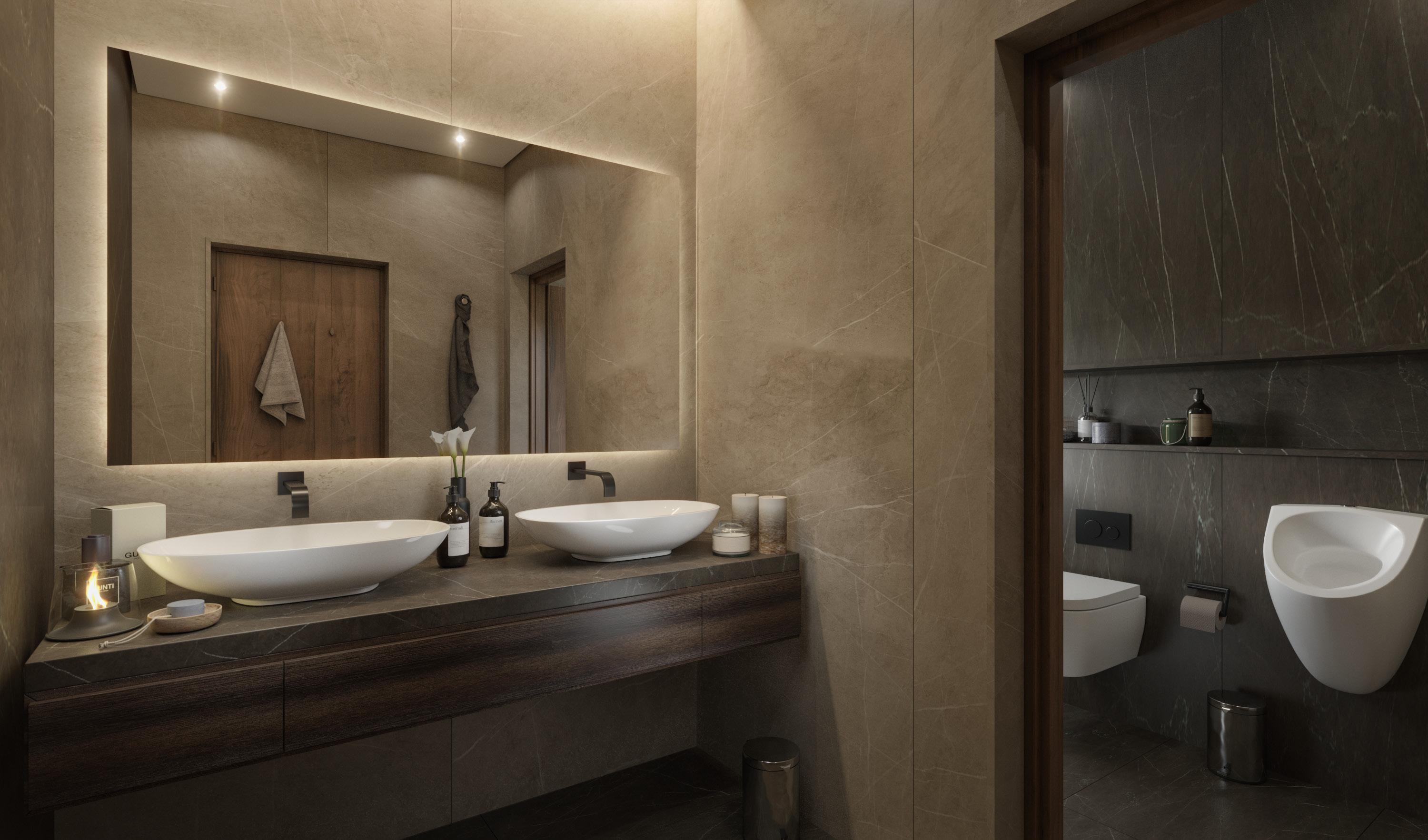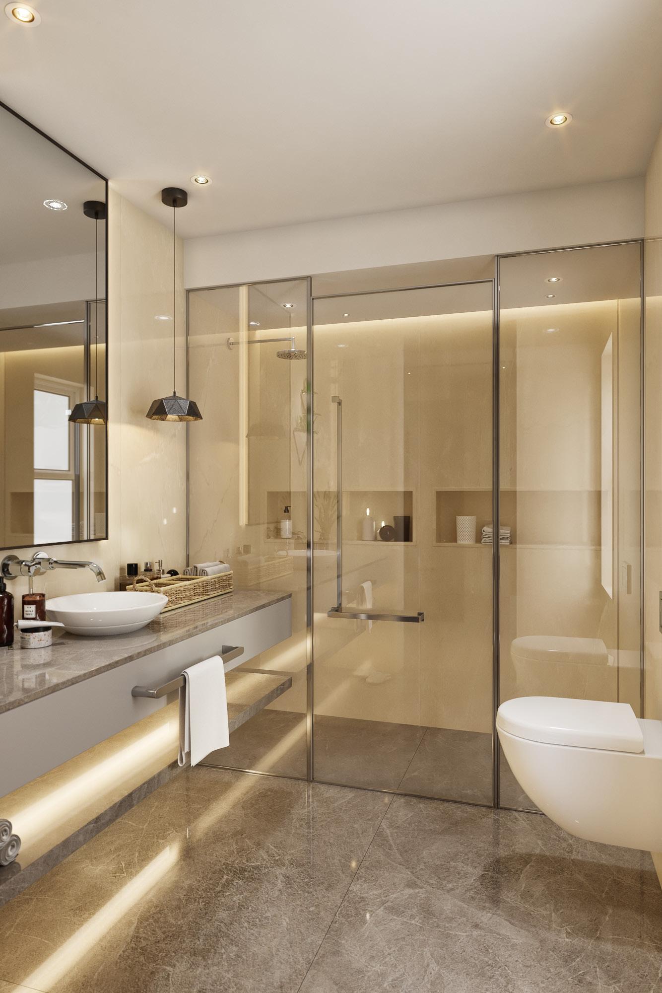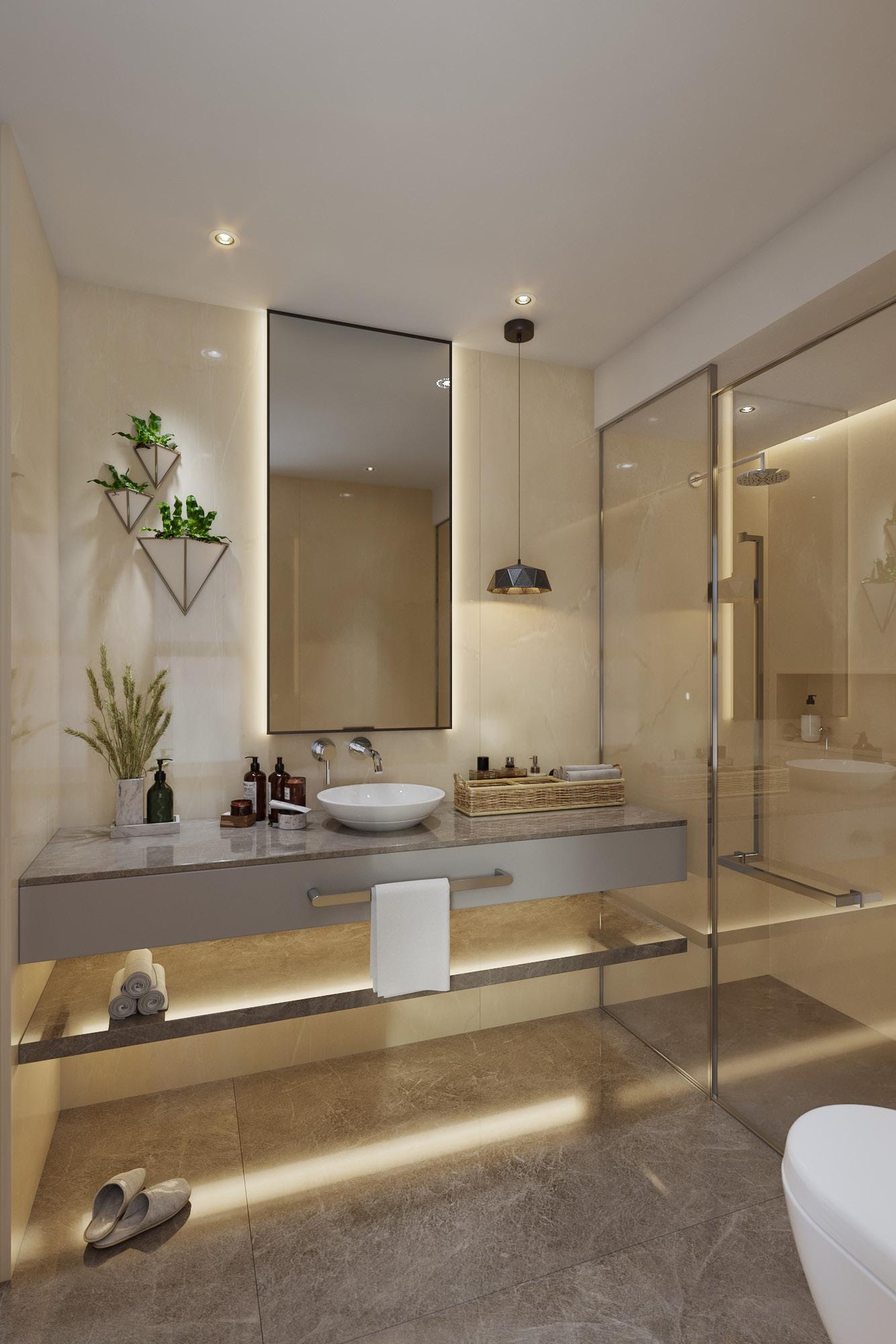 Replicate same cream and brown, look and feel as Jumeirah Islands bathroom design.