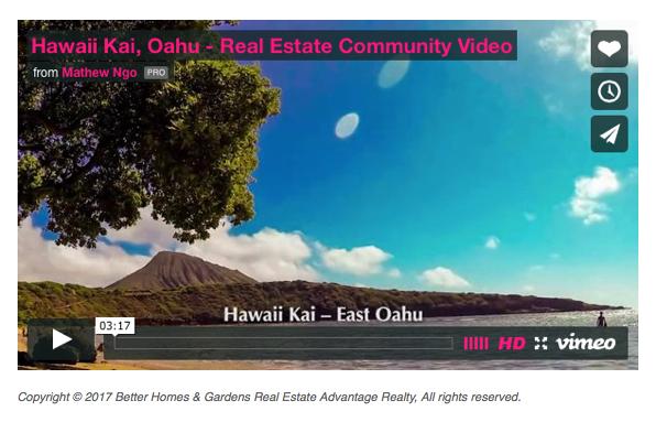 Showcasing all of the benefits and amenities of the community. When buyers are searching for homes, they’re also looking for a community…a lifestyle. My community videos are the perfect way to showcase this information. Currently available community videos for Hawaii Kai, Kailua, Kaka’ako and Waikiki. View videos at www.MathewNgo.com