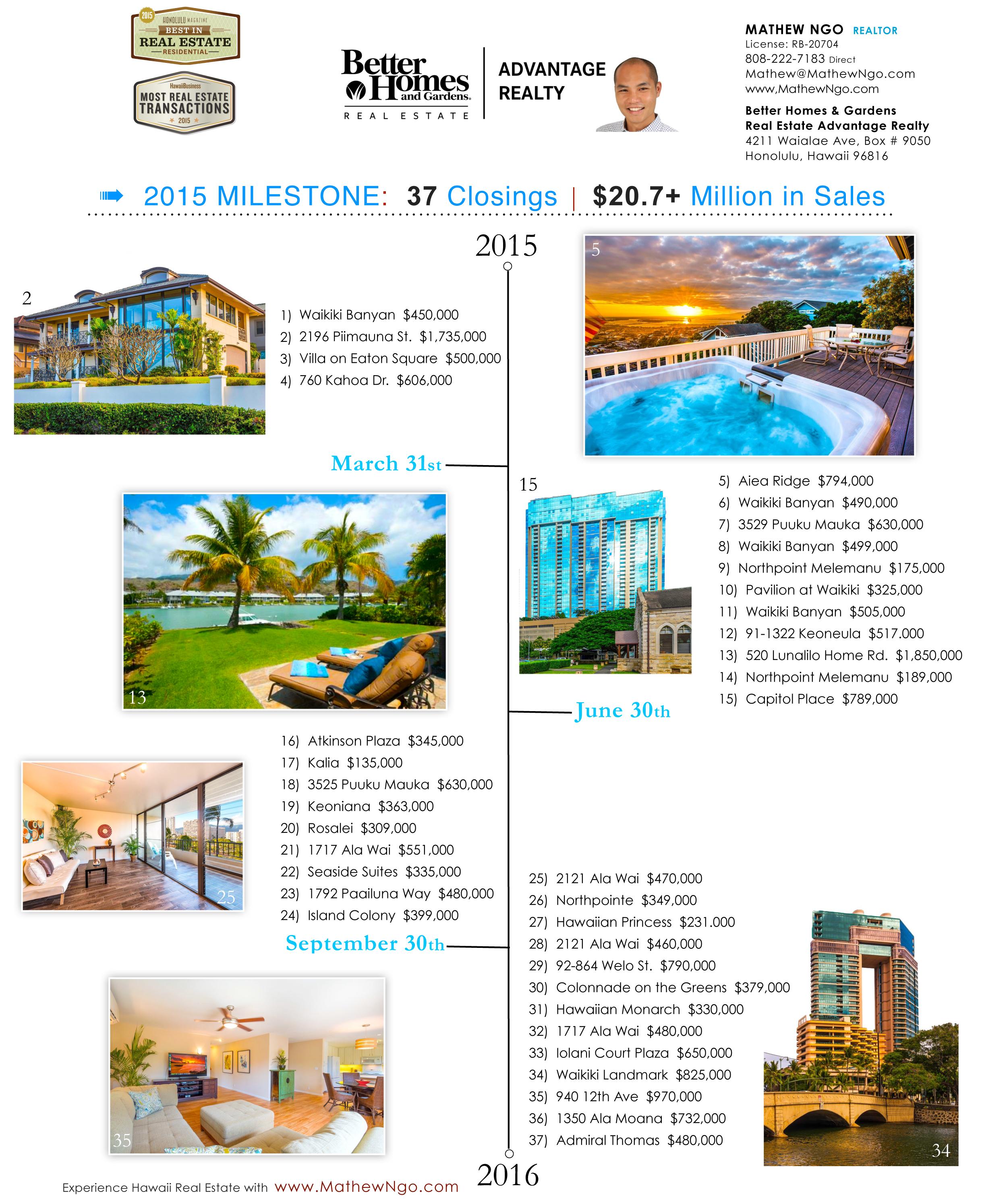 37 Closings Sales $30.7+ Million