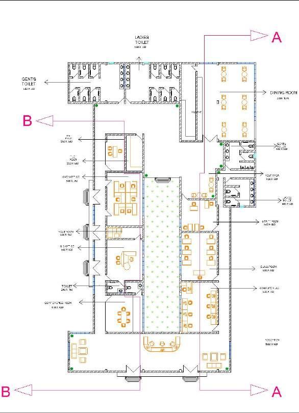 The training center consists of a computer room, a small classroom, and a staff room. Both sections have a common dining area and separate bathrooms for gents and ladies.