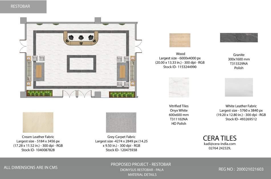 The interior layout of the Dionysus Restobar is approximately 10,000 square feet. Both the restaurant and the bar have outdoor seating areas and access to the kitchen, where their meals and drinks are prepared.