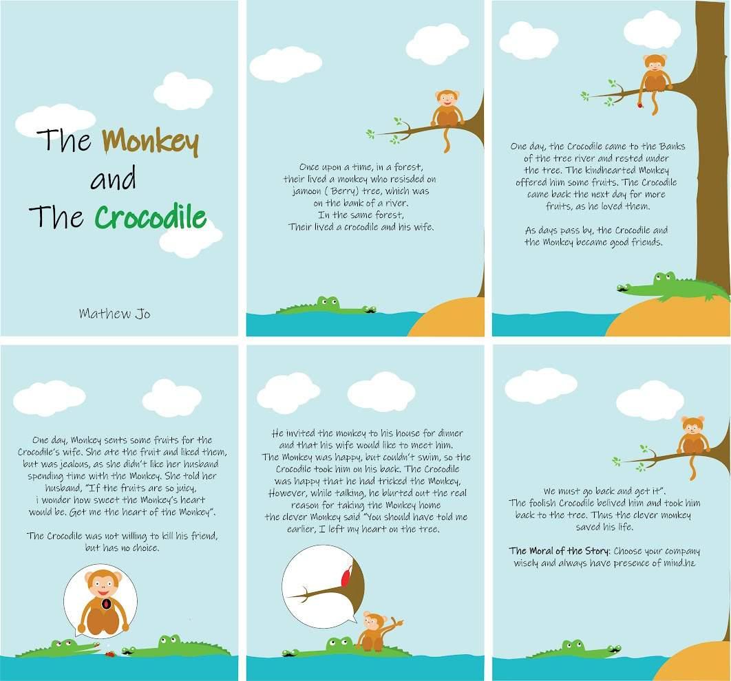 This is a story illustration of “The Monkey and The Crocodile” is a moral story from the collations of Panchatantra stories.