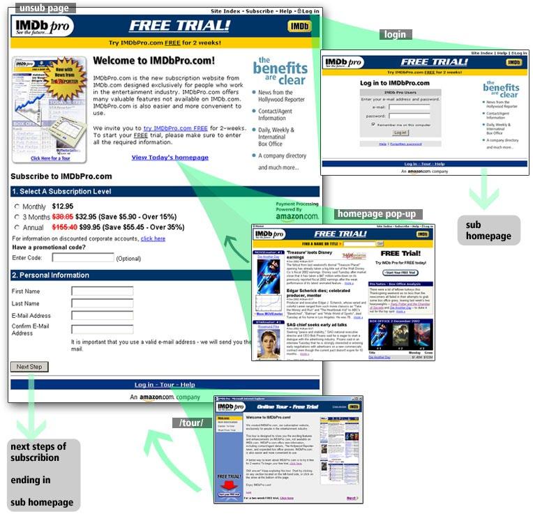 IMDbPro was one of the first paid subscription based web sites at the time. At lot of work went into understanding how to get people to subscribe. The goal was 10.000 paid subscribers within the first year a goal that we succeded with before the set deadline.