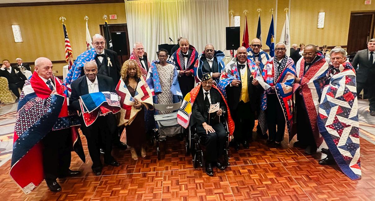 The evening’s entertainment set the tone beautifully, with exceptional music including talented violinists who brought The evening’s entertainment set the tone beautifully, with exceptional music including talented violinists who brought elegance and joy to the room. Yet, the most moving centerpiece of the night was the presentation of the Quilts of Valor. Each elegance and joy to the room. Yet, the most moving centerpiece of the night was the presentation of the Quilts of Valor. Each quilt was bestowed with dignity and gratitude, recognizing the sacrifice, service, and lived experience of the veteran it quilt was bestowed with dignity and gratitude, recognizing the sacrifice, service, and lived experience of the veteran it honored. Watching these veterans many of them elders receive this tribute was deeply emotional and a reminder that honored. Watching these veterans many of them elders receive this tribute was deeply emotional and a reminder that honoring service is a responsibility, not a choice honoring service is a responsibility, not a choice.