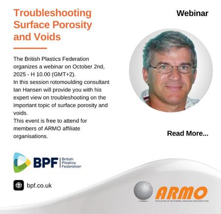 “More case studies and success stories should be shared, highlighting the realworld impact of rotational moulding in various industries, from automotive to medical. Showcasing innovation, such as sustainable practices or new applications, can inspire new ideas and attract attention to the industry.”