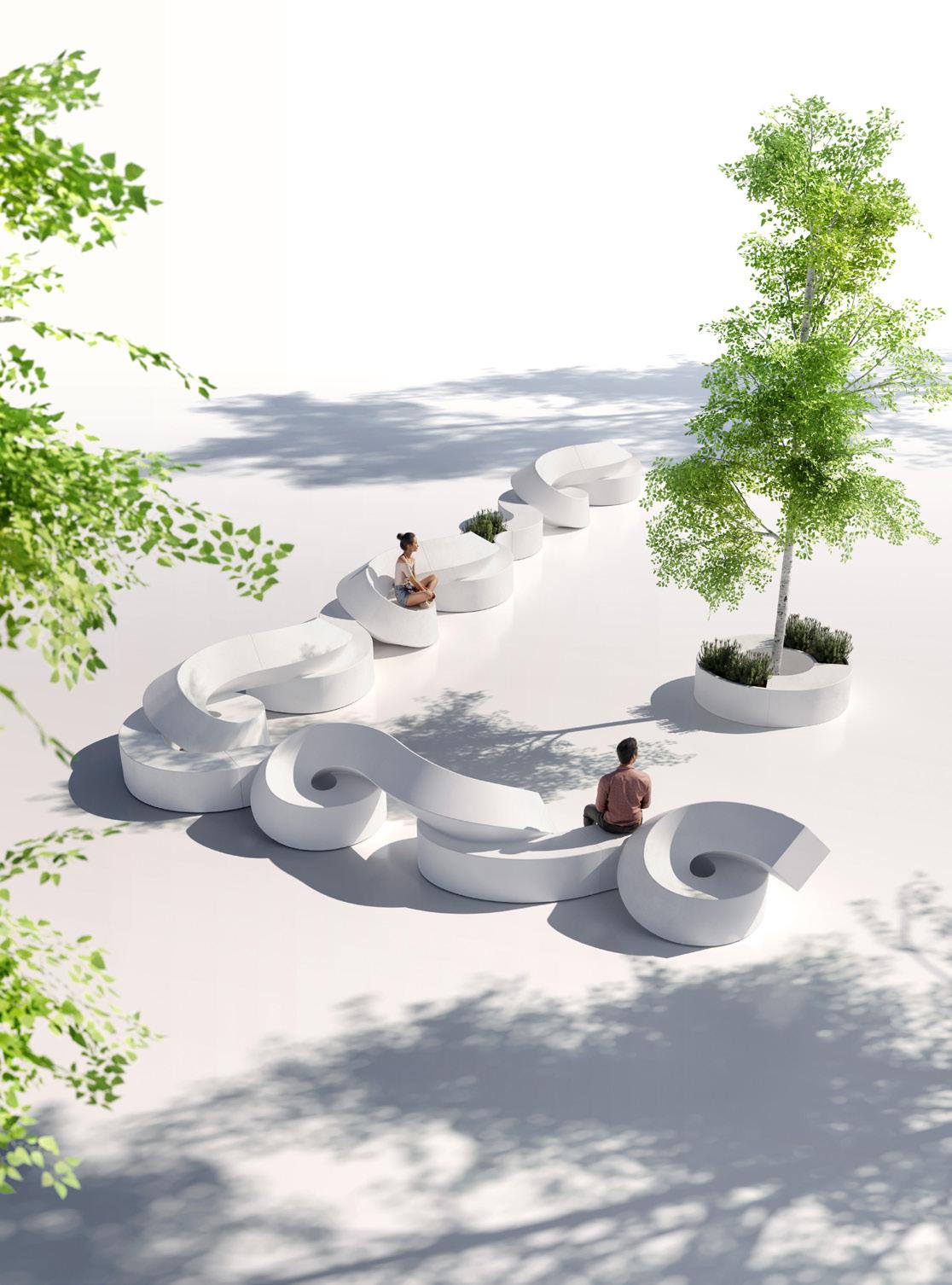 Twist represents a successful blend of graphic precision and organic fluidity. A long, flexible seating system that transforms to adapt to the needs of the space, achieving a delicate balance between architectural rigor and organic spontaneity.