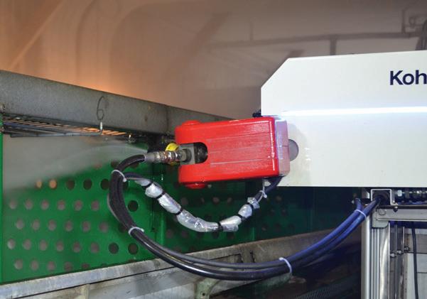 The robot moves up and down the aisles between cages, spraying highpressure water or cleaning solutions. When the robot finishes one row, it automatically slides down to move to the next row of cages. Farmers can control how often the robot cleans