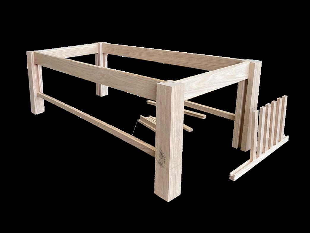The orthographics allowed me to understand the joints I needed to create - and also was the first axonometric drawing I ever created. The table is composed of mainly oak wood, with a subtle cherry trim on the top.