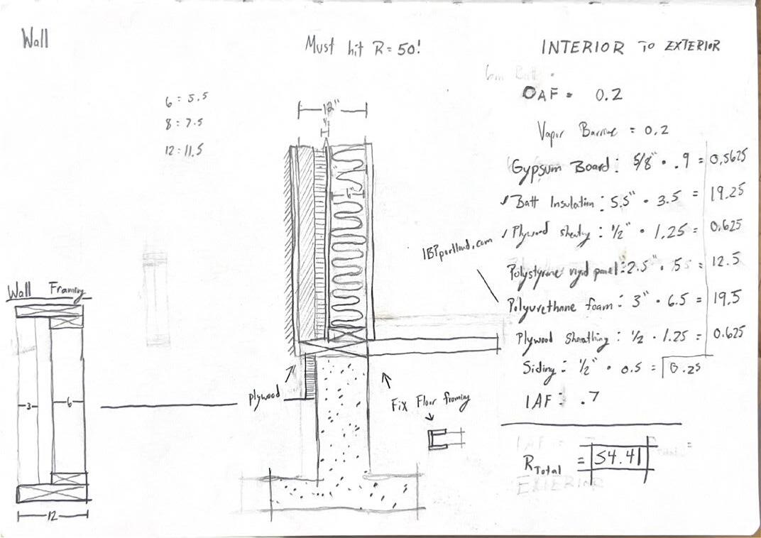 In accordance with the priciples of a Passive House, this wall section retains elements that ensure the reduction of waste and needless energy usage. Not only is it focused on multiple levels of insulation, but also minimizing the amount of thermal bridging. Passive building is a better way to reduce energy usage, carbon emissions, and general waste.